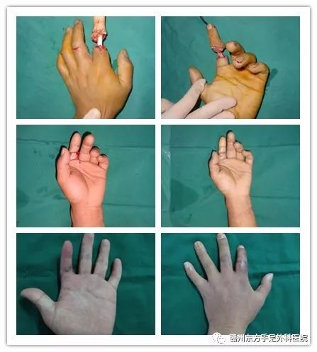 案例二:唐**.男.38岁.使用电锯不慎将左示中环三个手指锯断,多方打听了解我院后,迅速赶到我院后立即行左示中环指清创+再植术。以上两位患者均在2周左右成功完成了第一阶段的手术,也就是我们通常说的,断指再植手术治疗,再植手指全部成活。两位患者都是年轻力壮的小伙子,都是家中的顶梁柱,需要通过体力劳动来挣钱养家糊口,因此手术的成功,能否保住离断的手指,对于他们来说,直接影响整个家庭的发展。