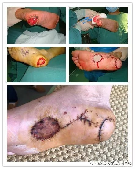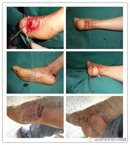 手术方案:溃疡切除+足底内侧动脉皮瓣+取皮植皮修复术